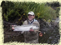 We start fishing for these guys down river at the end of September. The nights are starting to get cool and the kids are back in school, the river is more peaceful. The spring run Salmon are usually on their redds by this time, and the Steelhead are often holding right below them. We usually fish traditional techniques for these fish, dead drifting nymphs, swinging leaches and soft hackles or skating Muddlers on the surface. I prefer more traditional methods as it's at a slower more thorough pace and you can feel that grab. Occasionally with the warm afternoons of late winter we often get hatches of stoneflies and PMD’s, where we catch Steelhead on the surface. (For some this is the ultimate fly-fishing experience!!) We usually have a nice little push of winter run steelies that show up in late Dec.-Jan. We have heaters in our boats and we often cook up a warm lunch on those cold days. Dress warm, Come and fish the Trinity for Steelhead in the fall or winter